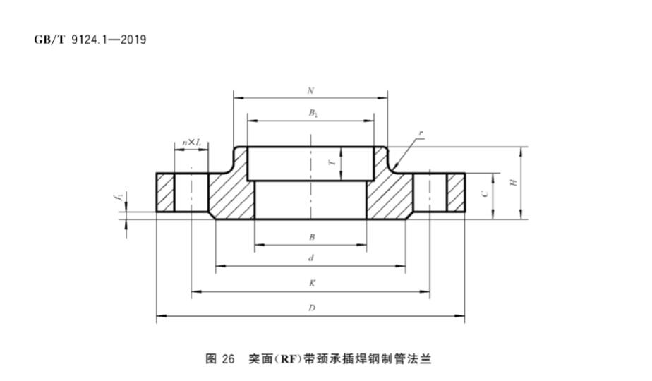現(xiàn)在執(zhí)行的是一個2019年的規(guī)范,在這個板式平焊的這個范疇里邊自己看了一下他這個圖片這上邊就是有ff形式的,還有rf的形式這是自己知道了,然后再翻到機械部的這個標(biāo)準(zhǔn)里邊看了一下也是同樣的,這個剖面圖也是這樣的一個狀態(tài)。接下來說,就是這個產(chǎn)品的。外徑表示外徑表示都是通用的大寫的字母d。螺栓孔的中芯距離也是用k來表示的,就是大寫的那個字母k然后如果是凸面產(chǎn)品的,這個凸面的一個長度是用字母小寫的d來表示的。